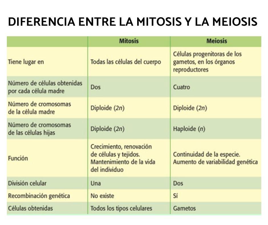 Por otro lado, esta es la diferencia entre mitosis y meiosis respecto a su resultado: