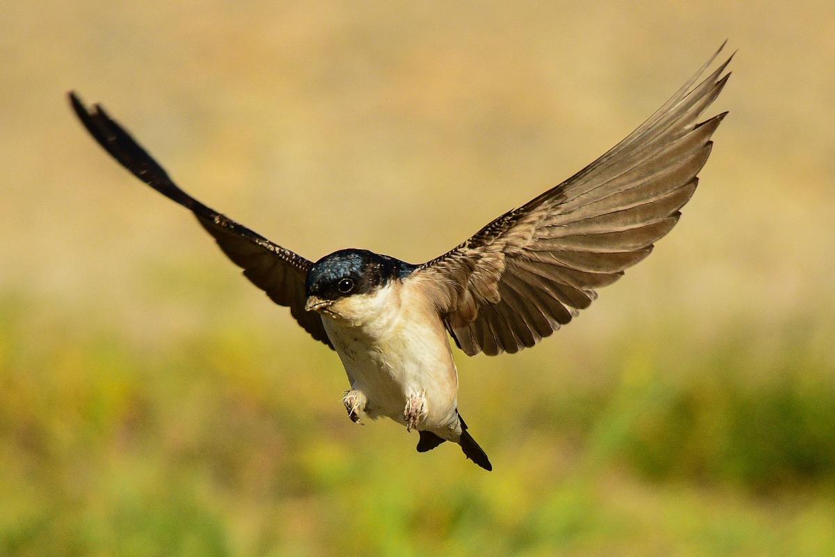 - Forma y tamaño de las alas: son tres especies extremadamente adaptadas a la vida en el aire, lo que viene determinado en gran medida por las características de sus alas. Golondrinas y aviones tienen alas parecidas, de entre 28 y 33 centímetros de envergadura, largas, pero de aspecto redondeado, lo que les permite desarrollar un vuelo equilibrado entre la velocidad y la maniobrabilidad más precisa. Los vencejos, sin embargo, exhiben unas alas muy alargadas y afiladas, curvadas hacia adelante y con una envergadura que puede superar los 45 centímetros en algunas especies. Gracias a ellas, son capaces de realizar vuelos a altísima velocidad, superando a golondrinas y aviones, pero más rectilíneos.