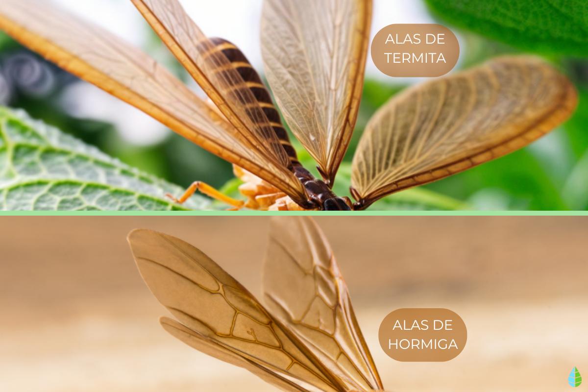 Otra diferencia es que las alas de las termitas suelen caerse fácilmente, por lo que es común encontrar alas sueltas cerca de los termiteros, mientras que las alas de las hormigas permanecen más firmemente adheridas hasta que las pierden tras el vuelo reproductivo.