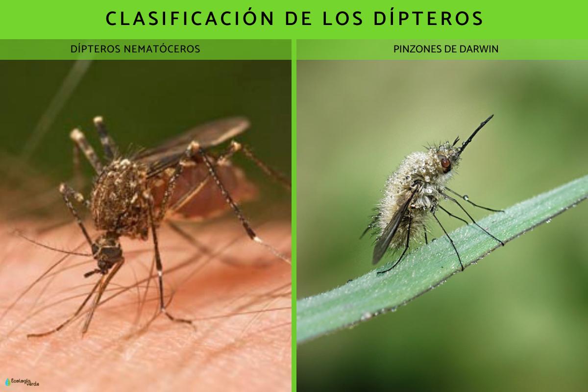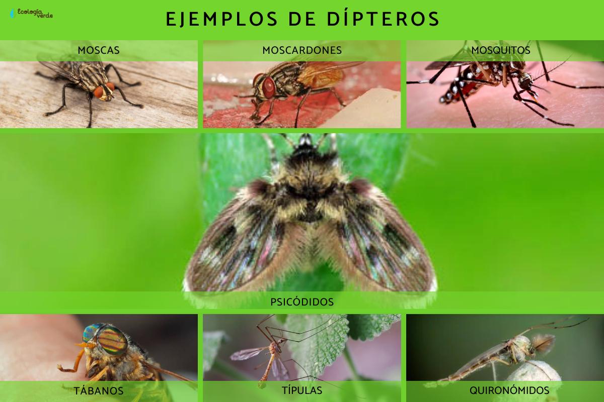 Existen muchos tipos de dípteros, pero podemos agruparlos según los nombres comunes que usamos para referirnos a ellos: