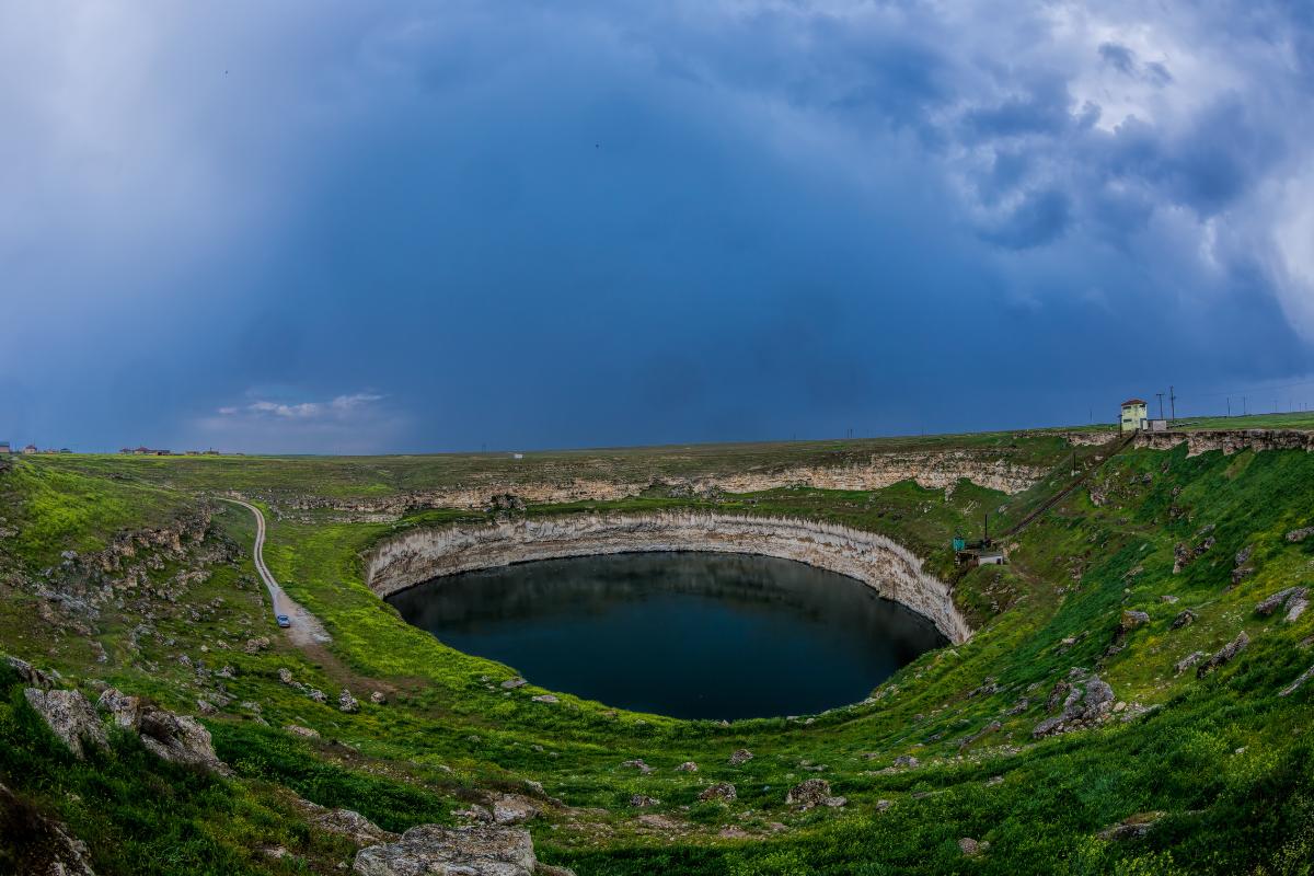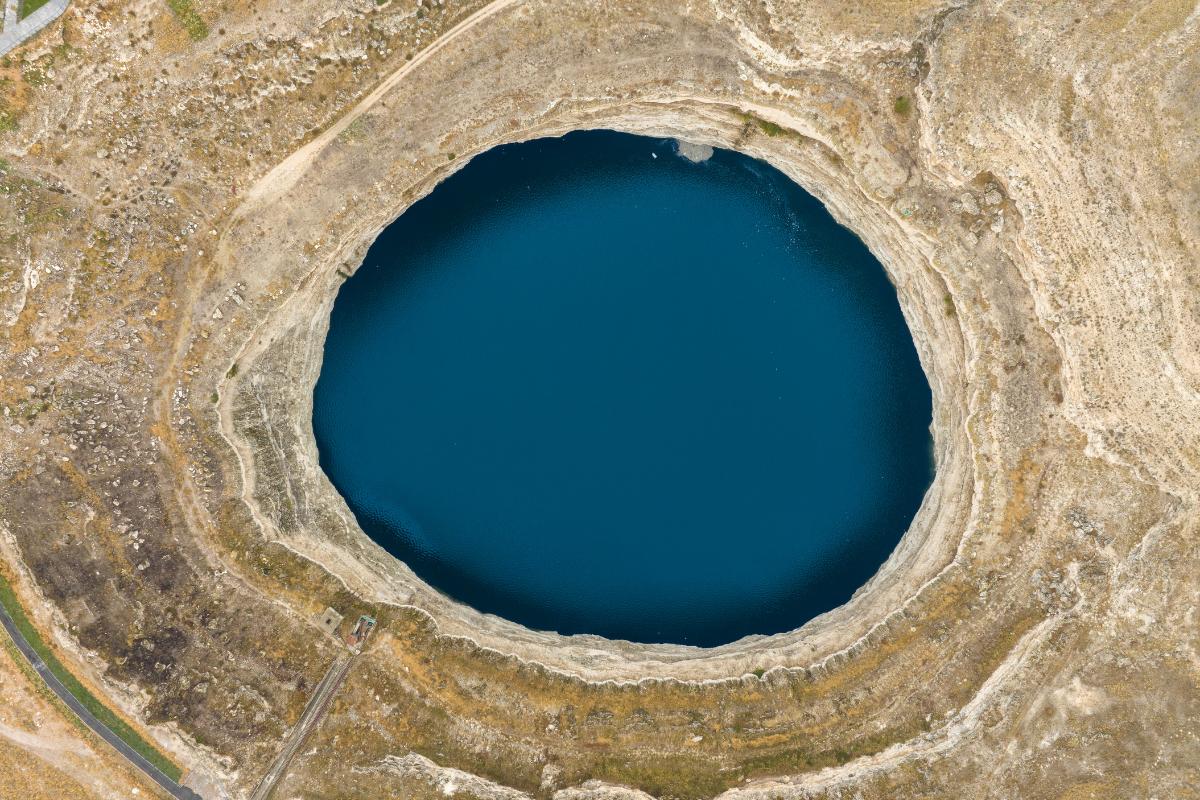 Esta dolina se encuentra en la costa de Omán y es famosa por su agua turquesa cristalina. Tiene aproximadamente 50 metros de diámetro y 20 metros de profundidad. Aunque popularmente se cree que se formó por el impacto de un meteorito, en realidad es el resultado de la disolución de la roca caliza y el colapso del terreno.