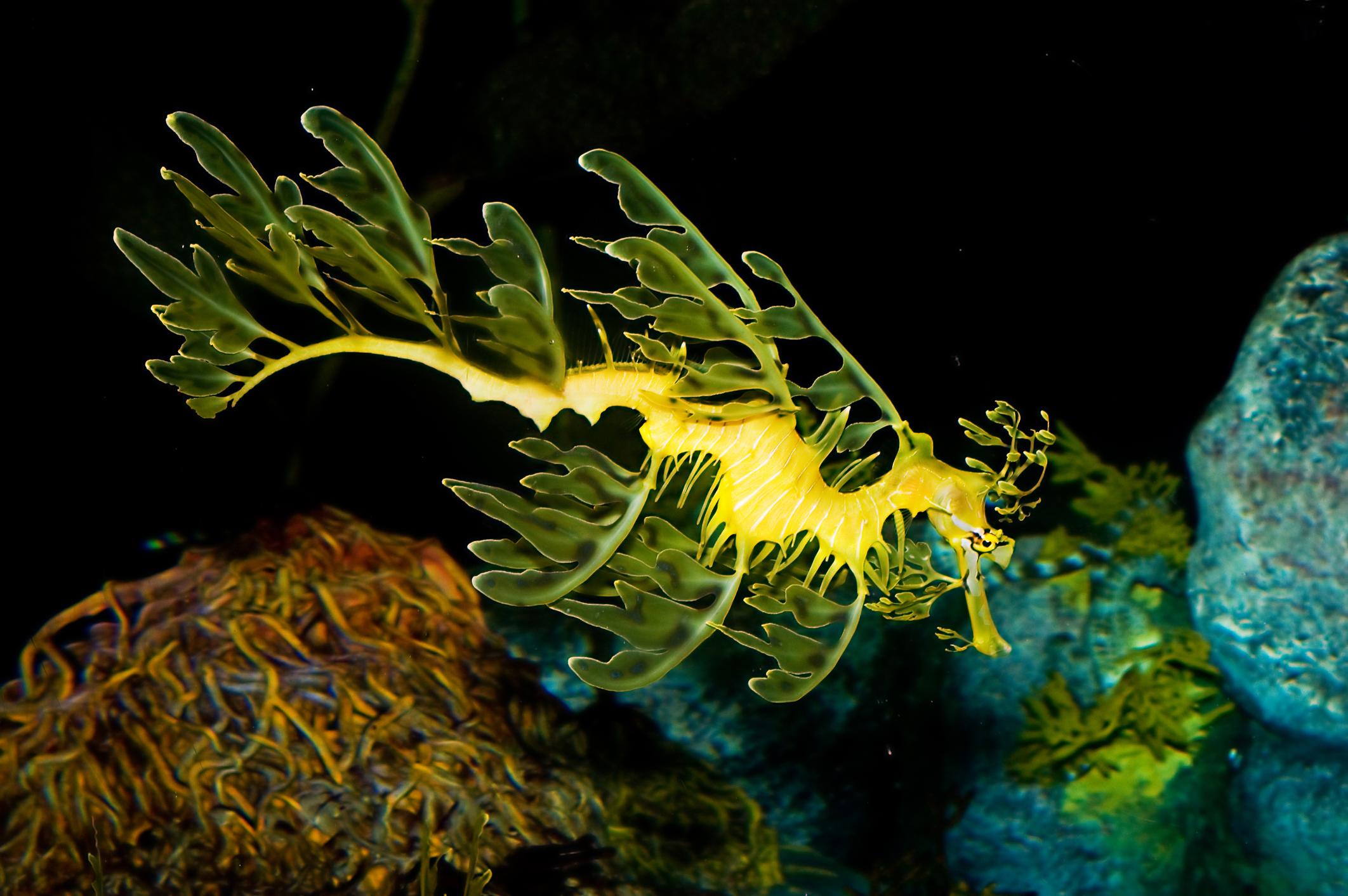 El dragón de mar, Phycodurus eques, pertenece a la familia de peces marinos Syngnathidae, que incluye a los caballitos de mar. Se trata de uno de los caballitos de mar más extraños que se conocen y por el momento, es el único integrante descubierto del género Phycodurus.