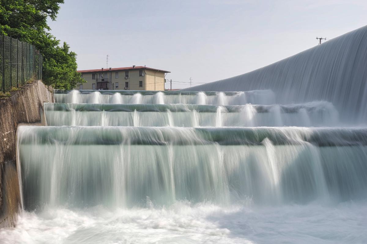 - Tratamiento de aguas: en esta ocasión, la estructura de la pantalla Coanda está formada por alambres de morfología triangular dispuestos en un perfil circular, respetando una serie de parámetros en cuanto a distancia y superficie que hace muy costosa su fabricación manual. La pendiente de la curva se elige en función de la velocidad que se quiera transferir al líquido, teniendo en cuenta la relación directamente proporcional entre ambas variables. Para evitar las turbulencias y crear ese efecto de succión, los alambres están inclinados transversalmente a la dirección del flujo. El efecto Coanda sumado al cizallamiento mecánico hace que el fluido siga la superficie curva y que los residuos, objetos sólidos no afectados por este fenómeno, caigan entre las ranuras.