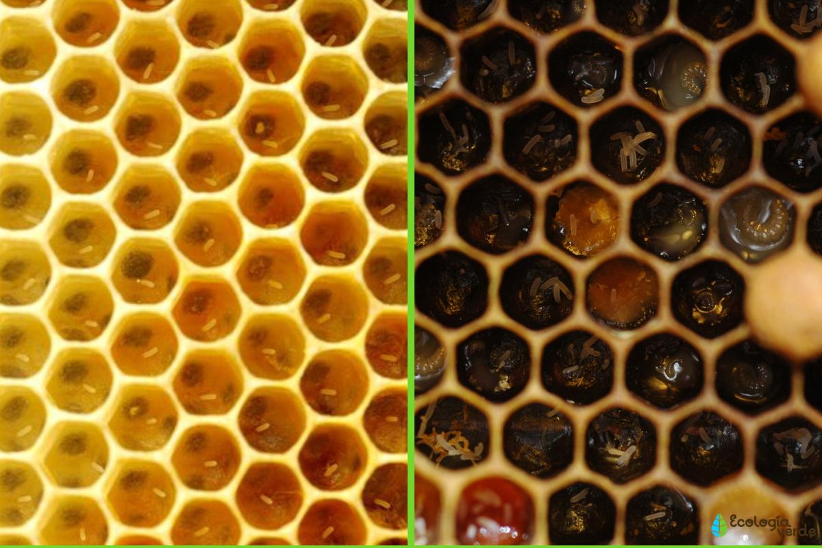 - Larva: en este punto del ciclo de las abejas, la larva pasa en este estadio 6 días, hasta que sale de su celda para formarse en pupa.