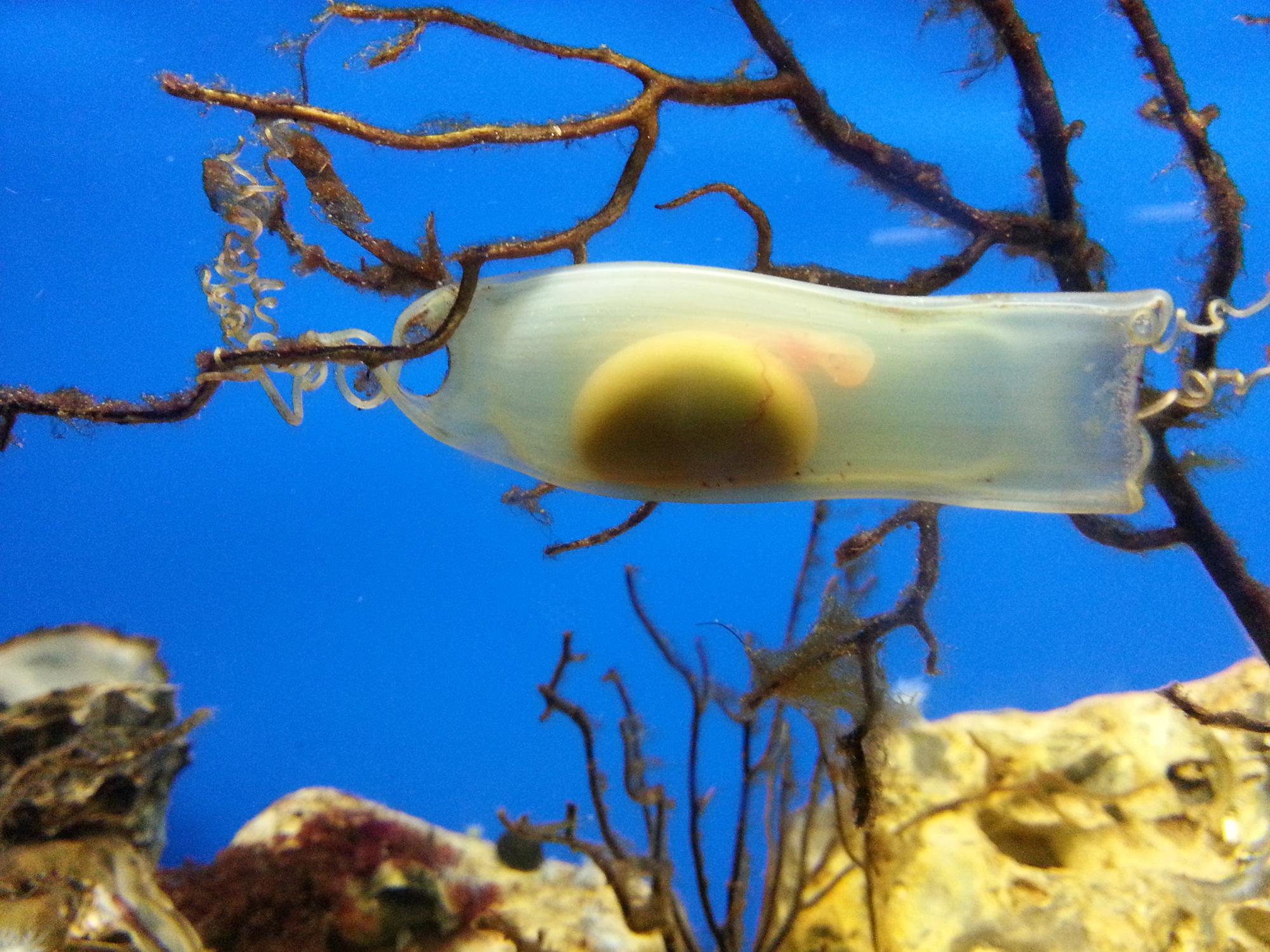 Muchos tiburones son capaces de poner huevos luego de que se produzca la fecundación interna, con presencia de abundante vitelo. Otras especies depositan sus huevos dentro de una cápsula córnea conocida como “monedero de sirena” en el que el embrión se nutre a través del vitelo durante meses, previo a nacer.