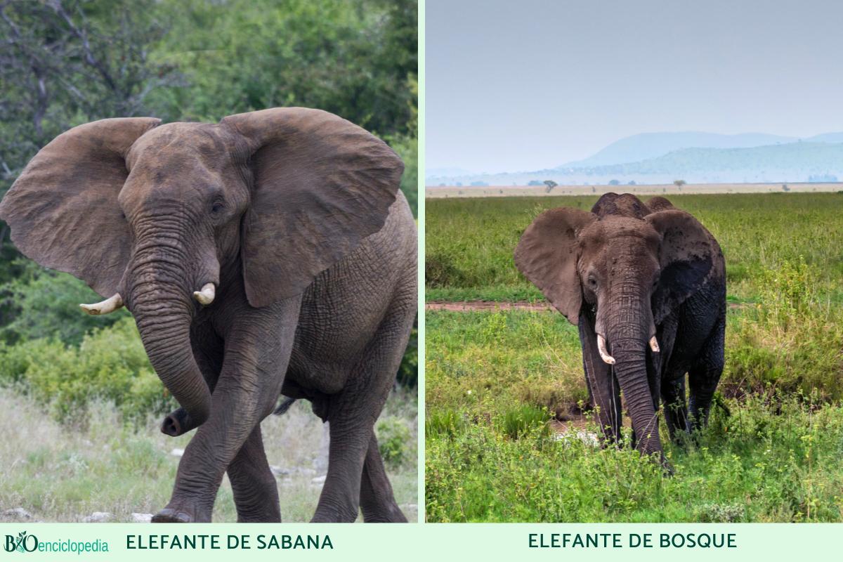 - Pertenece al orden de los proboscídeos y existen dos especies de elefante africano: el elefante de sabana (Loxodonta africana) y el elefante de bosque (Loxodonta cyclotis), que se diferencian esencialmente por su tamaño, hábitat, dieta y otras características físicas.
