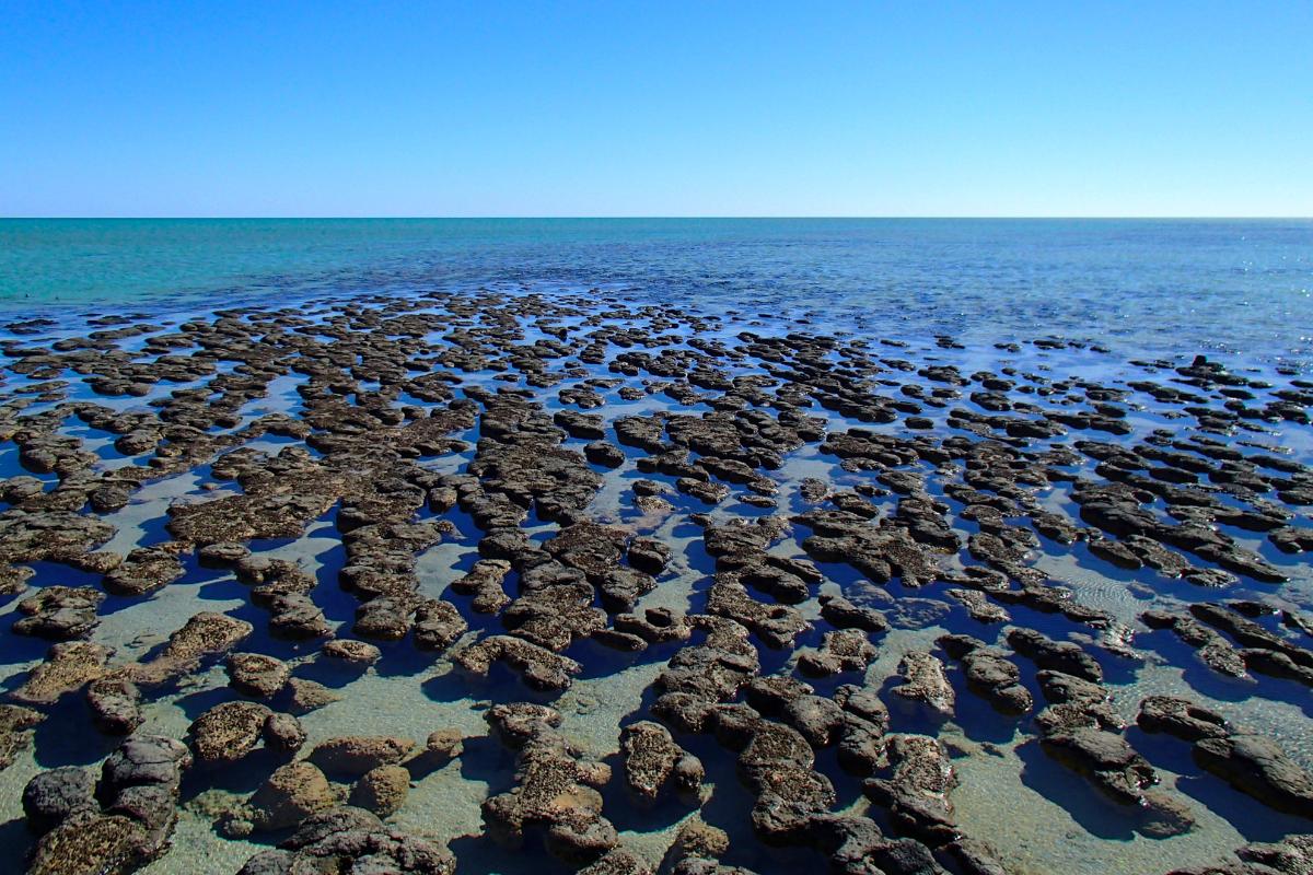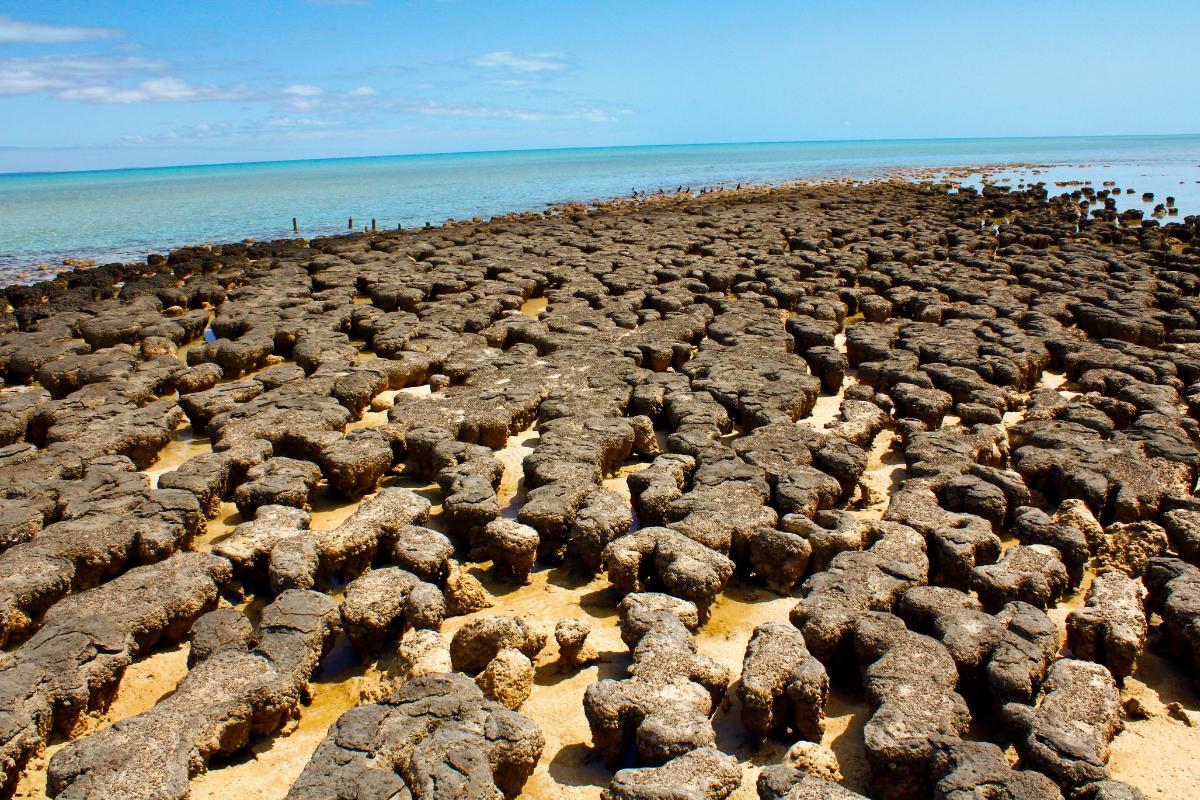 - Bahía Shark, Australia Occidental: es uno de los sitios más emblemáticos, declarado Patrimonio de la Humanidad por la UNESCO. Allí los estromatolitos crecen en aguas hipersalinas, lo que impide el establecimiento de animales marinos que podrían consumir las comunidades microbianas.