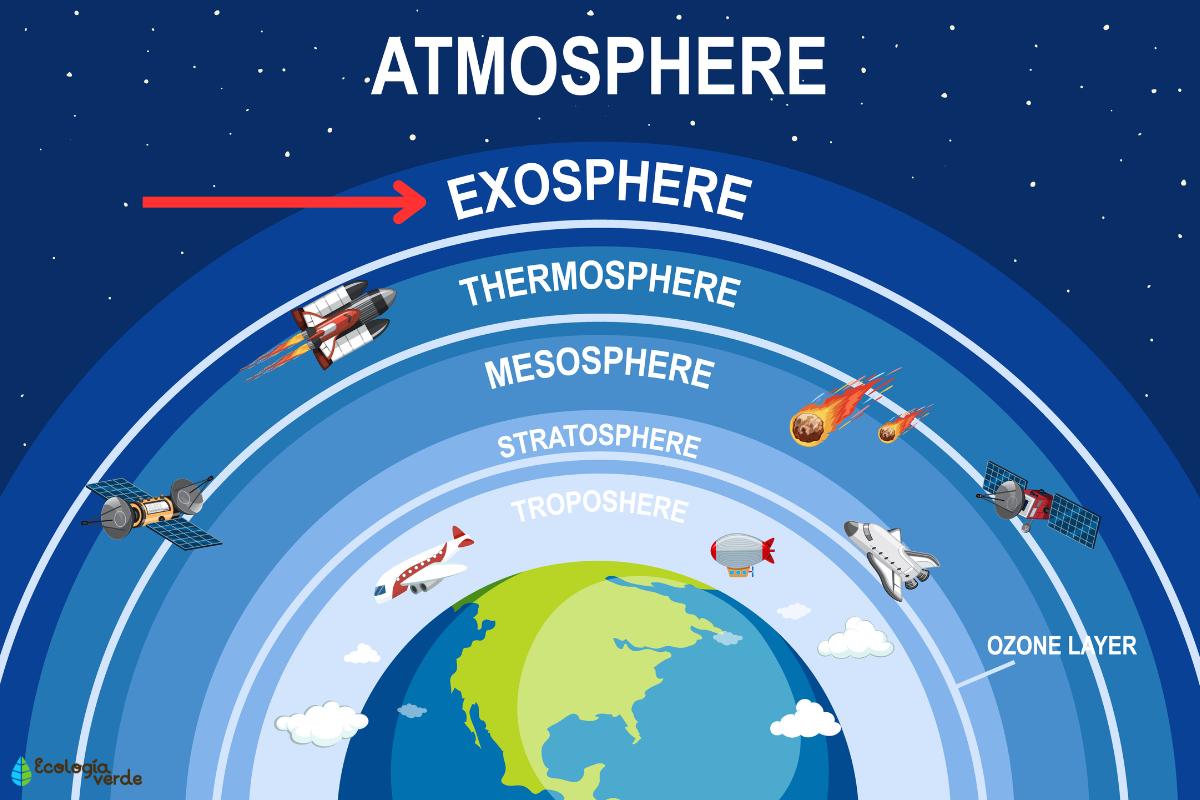 La exosfera es la capa más externa de la atmósfera terrestre, situada a partir de los 500 kilómetros de altitud y extendiéndose hasta mezclarse gradualmente con el espacio exterior. Caracterizada por su baja densidad y la dispersión de partículas, esta región actúa como una zona de transición entre la Tierra y el entorno espacial, aunque a veces pasa desapercibida por el ser humano y no la cuentan como una capa más de la atmósfera. En este artículo de EcologíaVerde vamos a contarte todo lo que necesita saber sobre qué es la exosfera, sus características, función y fenómenos.