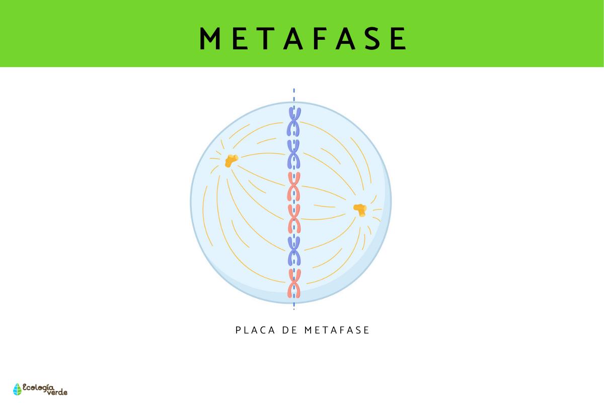 Durante la metafase cada uno de los cromosomas que se anclaron a los microtúbulos del huso mitótico son transportados hacia la placa metafísica o plano ecuatorial, una zona del ecuador de la célula. Esta se ubica equidistante a los centrosomas que se encuentran en los polos.