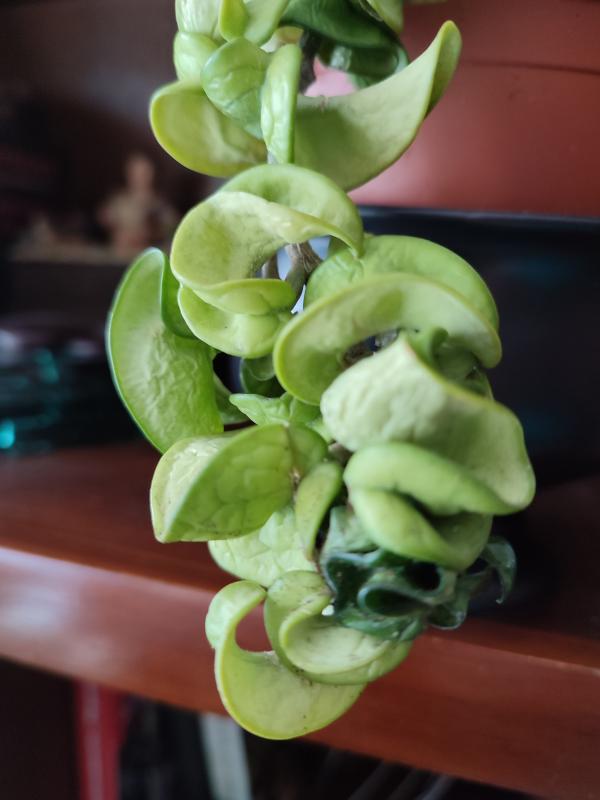 Flor de cera tiene las hojas arrugadas está como seca .ya no sé qué más hacer y está como descolorida le he cambiado la tierra