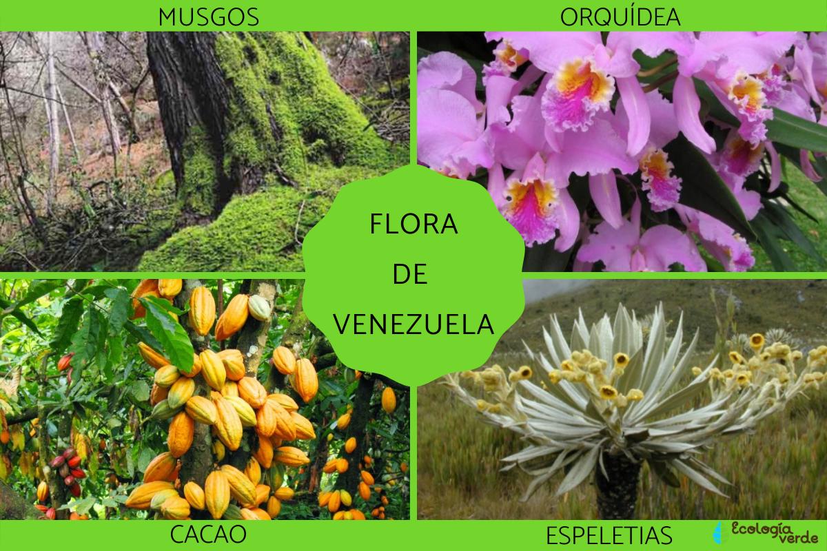 La flor típica de Venezuela se encuentra la orquídea, y en su territorio se pueden identificar hasta 1.632 tipos de orquídeas, principalmente en las zonas de bosques nublados. Por otro lado, el árbol declarado árbol nacional entre la vegetación de Venezuela está el araguaney o también conocido como cañahuate o guayacán amarillo, caracterizado por sus flores amarillas. Los espeletias, o también conocidas con el nombre de frailejones, también se encuentra en Venezuela, en los Andes.