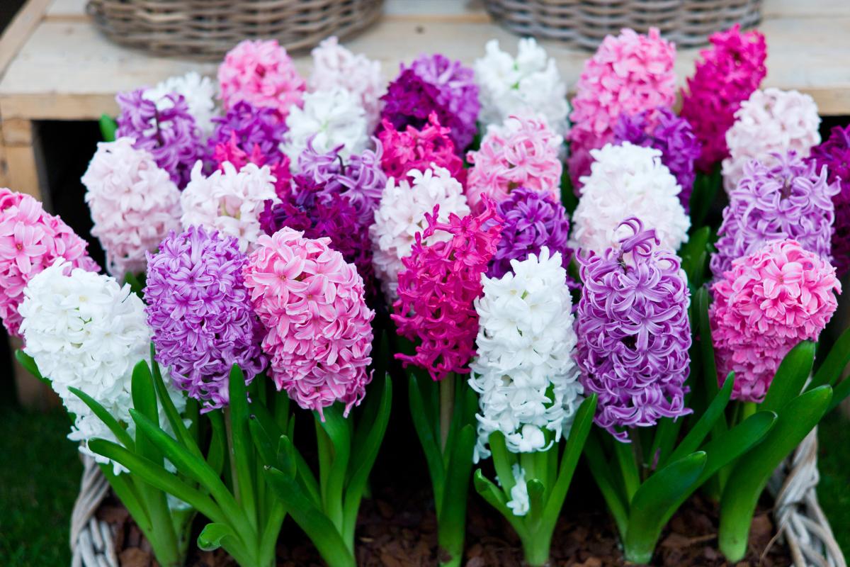 Este racimo de flores aparece de un cúmulo de hojas en acomodadas en forma de estrella. Así como los tulipanes, los jacintos también son flores de bulbo.