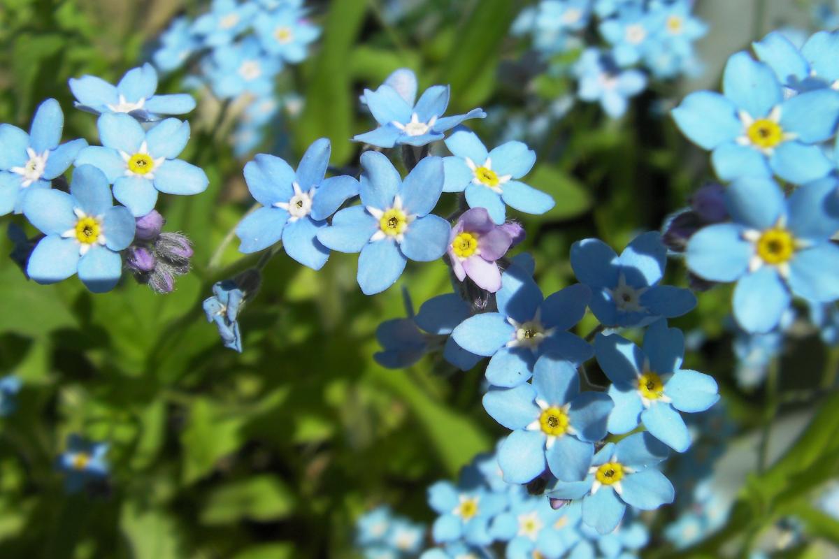 Las no me olvides o nomeolvides son plantas que florecen para primavera y verano, pudiendo empezar desde marzo. Se caracterizan por ser pequeñas, de 1 cm de diámetro, en color azul celeste, centro blanco y 5 pétalos. Su nombre le da un grado más en su valor, pues son consideradas "una promesa de amor". En varias culturas simbolizan la fidelidad, amor eterno y devoción, así que serán una gran adición llena de significado para tu jardín de primavera.