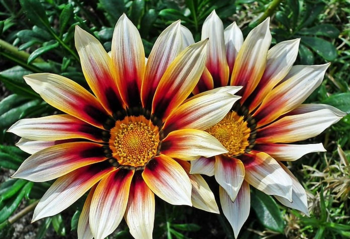 Otro género de plantas ornamentales muy popular son las gazanias, de la familia Asteraceae. Se trata de unas plantas muy rústicas, que apenas necesitan cuidados y producen, entre primavera y verano, unas flores de colores muy vivos, con gran variedad de colores y tonos, ofreciendo algunas de ellas diversos colores muy intensos en cada pétalo.