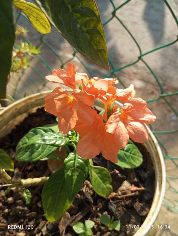 De nombre científico Crossandra infundibuliformis, este matorral de pequeño tamaño pertenece a la familia de las Acantáceas. Tiene su origen en Ceilán y la India y alcanza alturas de hasta 40 centímetros, aunque en condiciones óptimas puede llegar a doblar esta cifra.