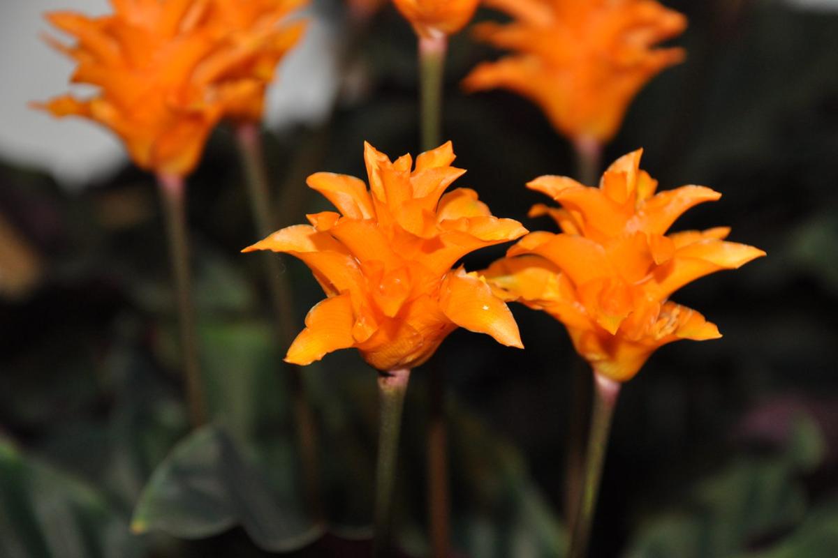 Su nombre completo es Guzmania lingulata y es una de las flores naranjas más llamativas. Se trata de la bromelia que ofrece la más vistosa de las inflorescencias. Estas aparecen en colores que van del rojo al amarillo, entre ellos los naranjas, con una gran cantidad de brácteas que son realmente la parte más llamativa de la misma.