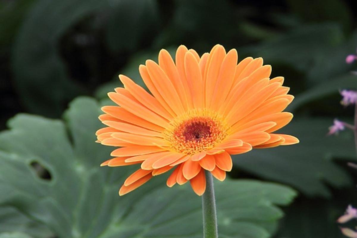 La gerbera es una planta tiene más de 150 variedades y en algunas de ellas se pueden ver flores naranjas. Se trata de una planta con flores de muchos pétalos que pueden ser de una amplia gama de colores y de distintas intensidades, por lo que se pueden ver gerberas de flores naranjas en un tono claro, como en la imagen, o bien de un tono naranja muy intenso.