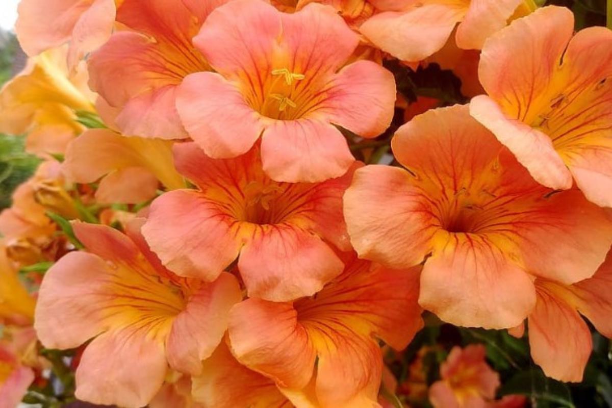 Otras de las flores naranjas que más llaman la atención por su forma y tamaño son las de la planta trompeta trepadora china. Su nombre científico es Bignonia grandiflora y, como su nombre indica, se trata de una planta trepadora que tiene su origen en las zonas montañosas de Japón y China.