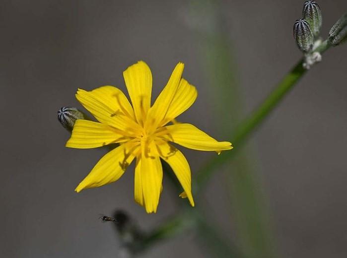 También conocida como abrepuños, pertenece a la familia de las Compuestas y cuenta con tallos erectos y foliosos, hojas alternas y flores en capítulos terminales de color amarillo. Esta flor silvestre suele crecer en los bordes de los caminos entre primavera y verano.