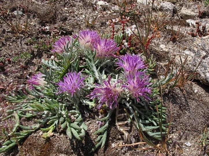 También perteneciente a la familia de las Compuestas, esta planta, comúnmente conocida como ajonje de montaña, cuenta con hojas alternas de un color verde grisáceo y con flores de color amarillo. Florece durante el verano, generalmente en pedregales y roquedos, como puedes ver en esta imagen.
