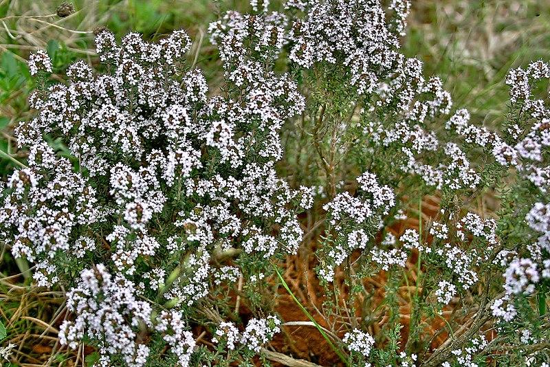 El tomillo es una planta silvestre originaria del Mediterráneo. También de tipo arbustivo al igual que la lavanda, puede llegar a medir hasta 40 cm de altura. Es muy fácil de cultivar y produce unas flores blancas y pequeñas bastante llamativas. Si te gusta esta planta, te animamos a conocer Cómo plantar tomillo y los Cuidados del tomillo.