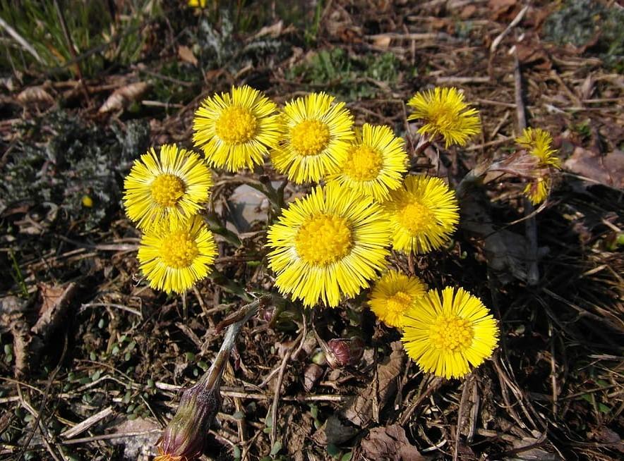 La conocida como pie o uña de caballo es una de las flores silvestres amarillas utilizadas como ingrediente en ensaladas por su aroma y sabor. Además, también se puede utilizar en infusiones para mejorar afecciones respiratorias como el asma.