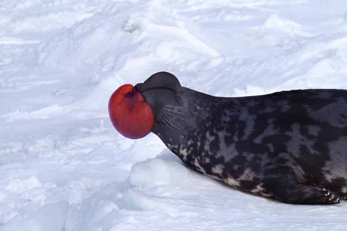 La foca capuchina (Cystophora cristata) gracias a su cuerpo robusto y grande y su actitud agresiva se impone ante las demás, pero su situación general no es la mejor. En 2006 se estimaba que la población mundial de esta especie de foca era de 592.100 individuos. Según datos de la IUCN Lista Roja de Especies Amenazadas, actualmente todavía se encuentra en estado vulnerable.