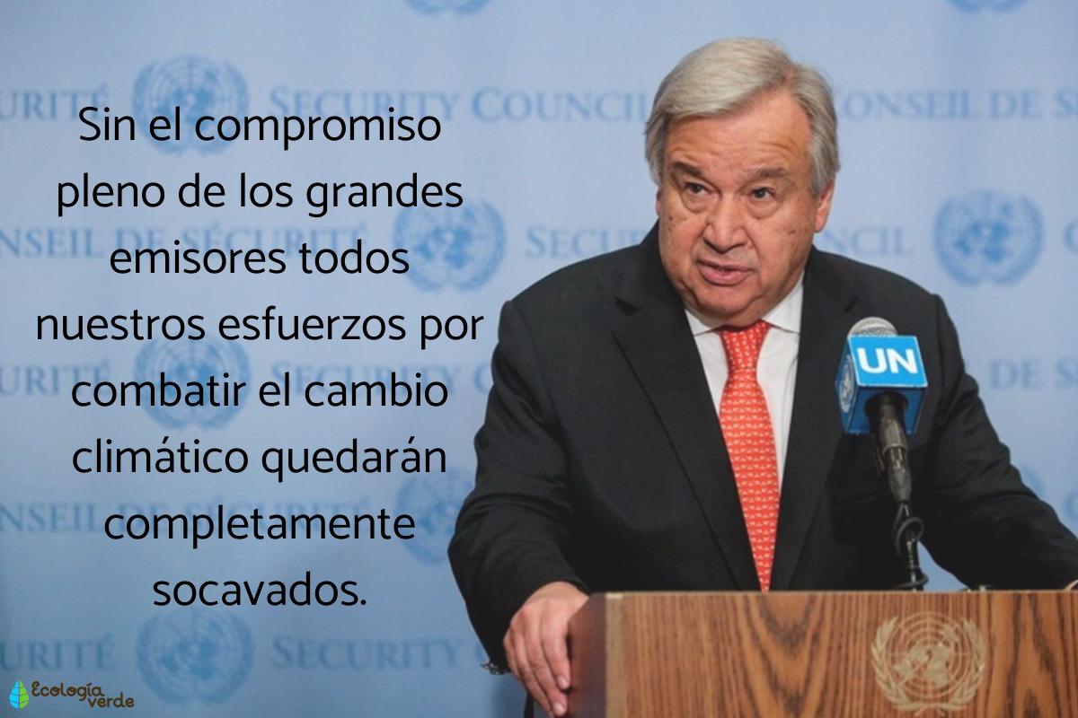 - "Sin el compromiso pleno de los grandes emisores todos nuestros esfuerzos por combatir el cambio climático quedarán completamente socavados". Antonio Guterres, Secretario general de la ONU.