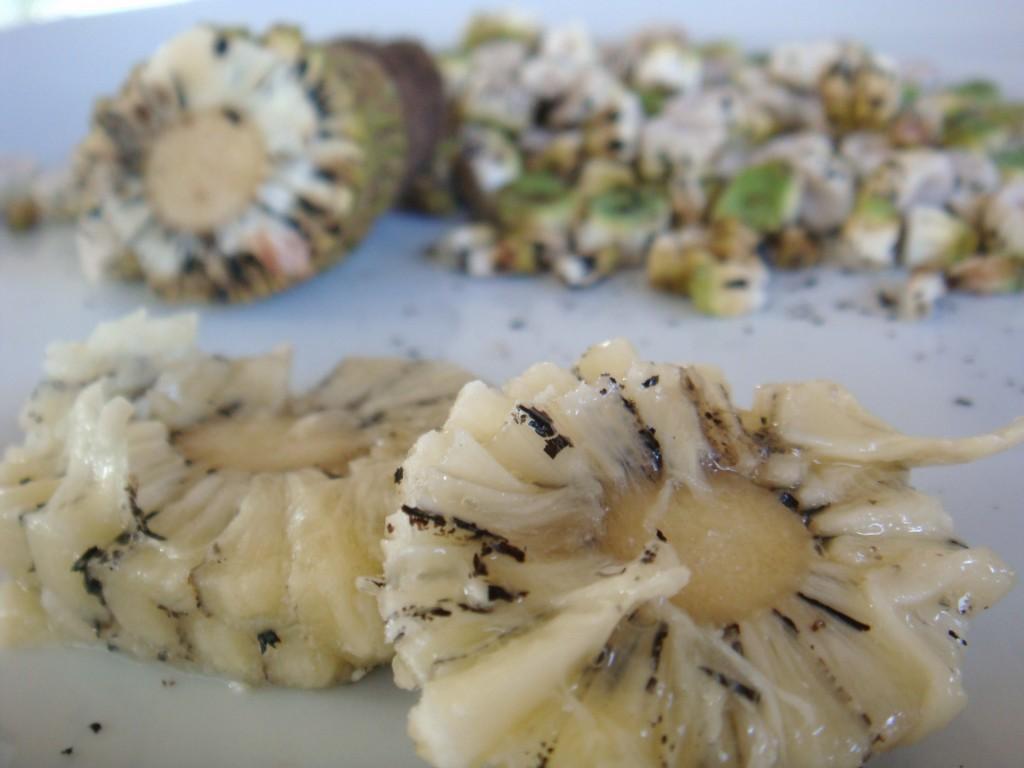 Ya solo su nombre nos da una pista acerca de su gran sabor. La planta que da este fruto, llamada cerimán o Costilla de Adán por la curiosa forma de sus hojas, es de la familia de las trepadoras y procede de las selvas tropicales de México. Parece más una mazorca de maíz que una fruta, pero también encontramos cierto parecido a una piña. Los que la han probado aseguran que sabe a una combinación de plátano maduro, piña y mango.