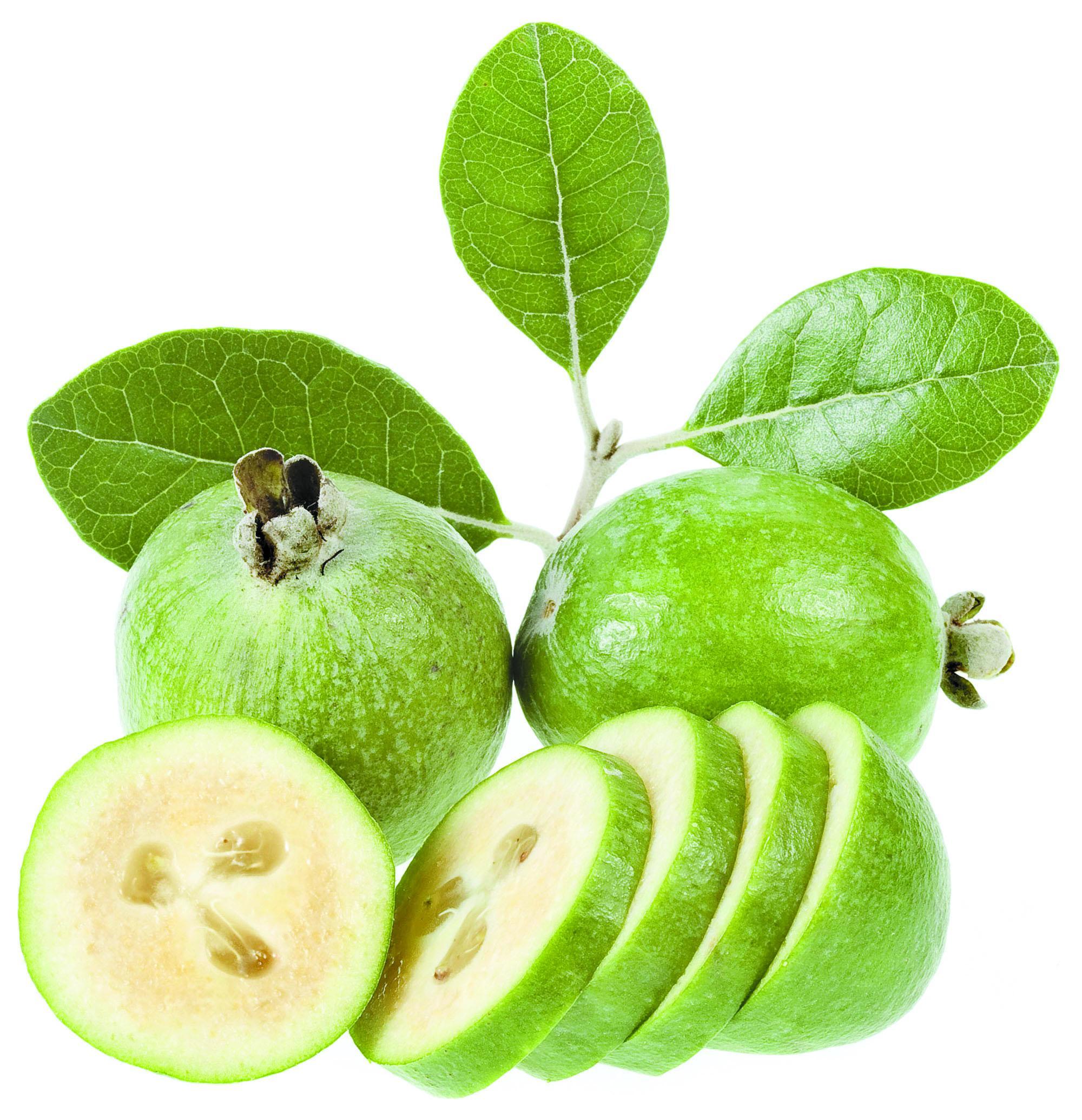Esta fruta es originaria de Brasil, aunque se cultiva también en Nueva Zelanda, Colombia e incluso Galicia. Es muy resistente al frío y puede aguantar temperaturas de -12 grados centígrados. Su exterior es verde (su interior puede ser de diversos colores), de forma ovalada y tiene un gusto aromático y dulce. Sus propiedades medicinales son muy conocidas, especialmente, su fruto antes de madurar es considerado muy beneficioso para curar quemaduras. En los últimos años, la guayaba se ha vuelto extremadamente popular a nivel mundial porque se han demostrado sus cualidades para la salud y a casi todos les gusta su sabor. Al tocarla nos recuerda a una pera.