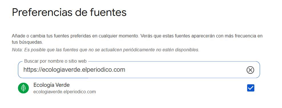 Cómo añadir Ecología Verde como fuente preferida en Google