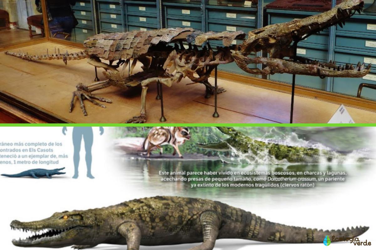 - Por otro lado, en el Mioceno inferior, hay evidencias que existió un cocodrilo tipo aligátor llamado Diplocynodon ratelii y se encontraba por la zona de la cuenca del Vallés-Penedés, en Barcelona. En la imagen de abajo puedes verlo.