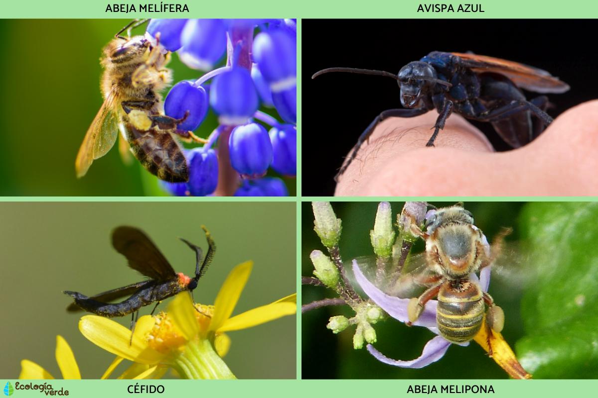 - Céfido (Cephus nigrinus): es alargado, de cuerpo delgado color negro. Sus larvas perforan el interior de tallos vegetales.