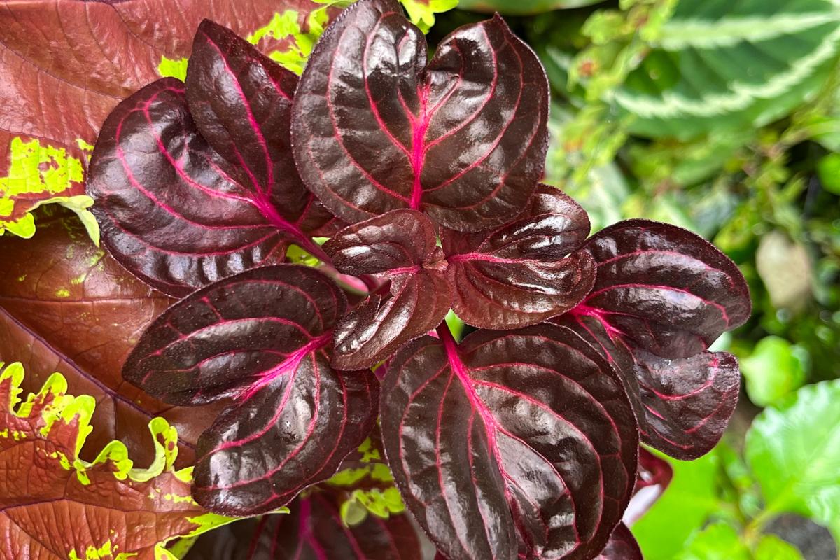 - Iresine herbstii es una vistosa planta fanerógama, de colores entre verde, morado y granate intenso, que es su mayor atractivo visual, y por lo que muchos jardineros buscan incluirla entre sus plantas especiales.
