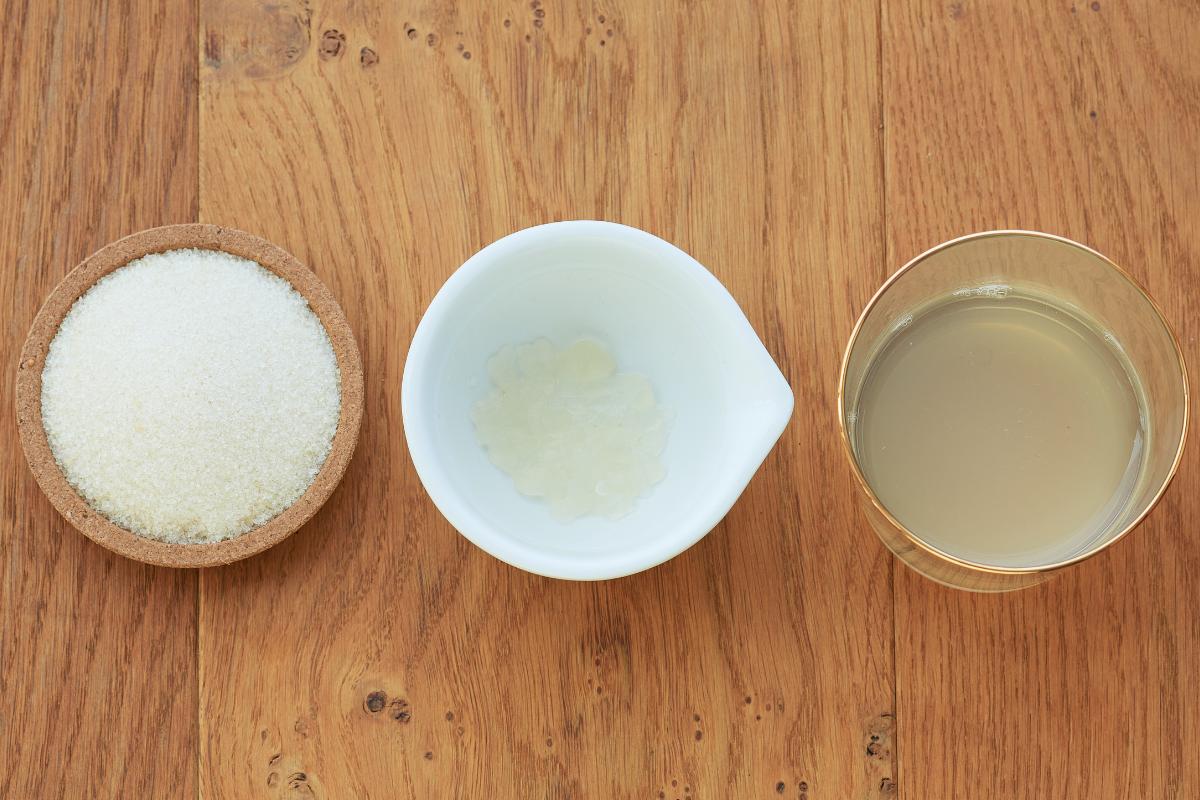- Se añade un litro de agua y media taza de azúcar, de piloncillo o miel de abeja. Además a la fuente principal de azúcar se puede añadir 2 gramos de fruta, como por ejemplo piña que combina muy bien con el sabor del kéfir y que contiene mucha fructuosa para alimentar al cultivo. Otra fruta acostumbrada es limón, kiwi, manzana, o fruta deshidratada como pasas o higos. Añadir frutas le compartirá al kéfir propiedades adicionales.