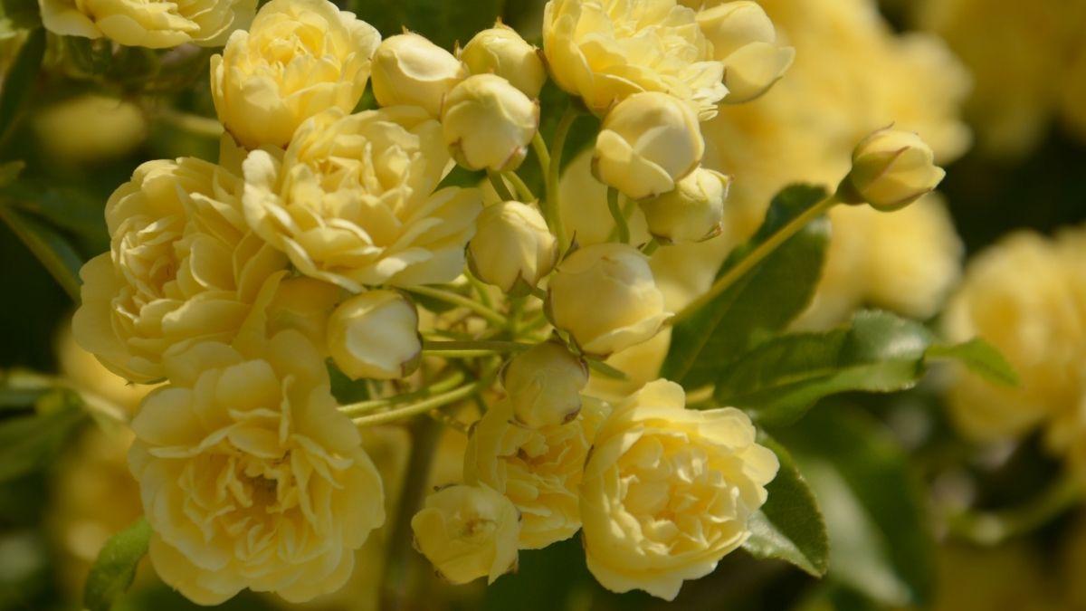 Sus flores, pequeñas y dobles, aparecen en racimos blancos o amarillos. La variedad ‘Lutea’ es una de las más conocidas. Y lo mejor: prácticamente no tiene espinas. Esto la convierte en una opción ideal si hay niños o mascotas en casa.
