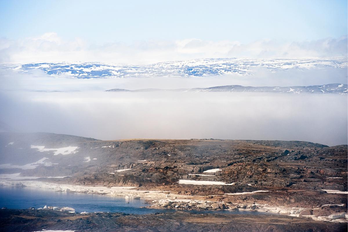 Las condiciones climáticas son extremas, con inviernos largos y oscuros y veranos cortos y frescos. La superficie del interior de la isla está cubierta por 85% de hielo, dejando tan solo estrechas franjas de tierra libre en las costas y ciertas áreas montañosas. Su perímetro posee numerosos fiordos y bahías. Sus habitantes originarios, los Inuit, han sobrevivido gracias a la pesca y la caza y han forjado la cultura de Groenlandia.