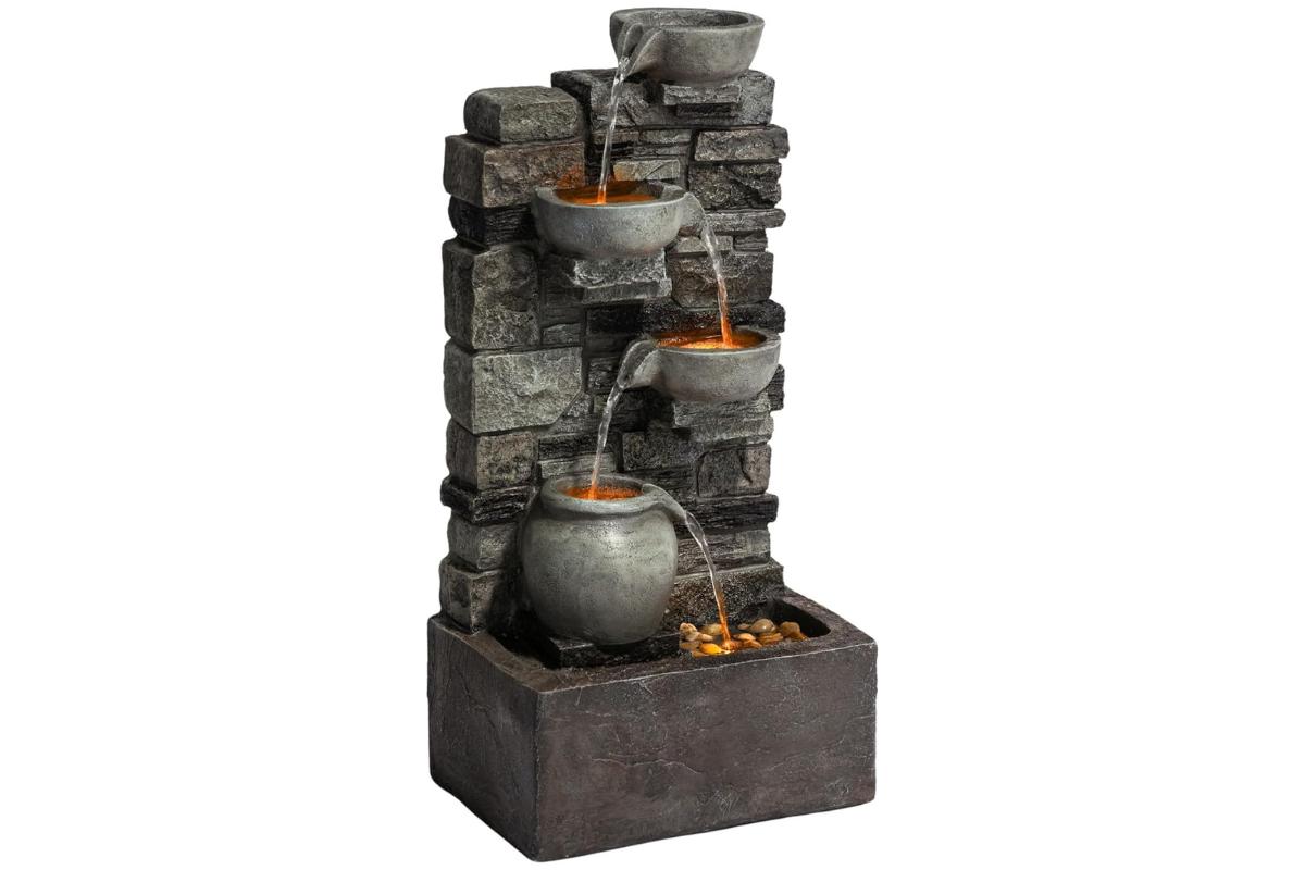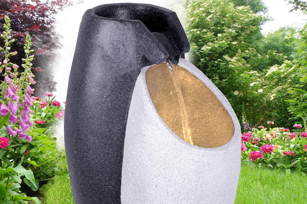 La fuente Quellstein es una pieza decorativa de estilo natural que simula una roca de granito con agua fluyendo desde la parte superior. Su diseño compacto y vertical es ideal para jardines pequeños, balcones o interiores. Funciona con bomba eléctrica e incluye iluminación LED cálida que destaca el movimiento del agua, creando un ambiente relajante. Fabricada en materiales resistentes, es fácil de instalar y perfecta para quienes buscan una fuente de piedra realista sin complicaciones.