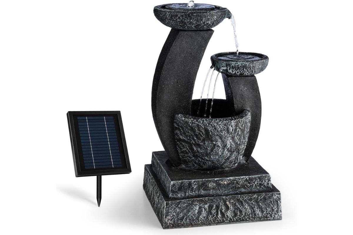 La fuente Fantaghiro de Blumfeldt transforma cualquier rincón en un espacio mágico gracias a su diseño de tres niveles con apariencia de granito. Funciona con energía solar e incorpora una batería recargable y luces LED automáticas que se encienden al anochecer. Su minibomba integrada recircula 250 L/h en un circuito cerrado, por lo que no necesita desagüe ni conexión eléctrica. Fabricada en poliresina resistente, es ideal para jardines, patios o interiores donde se busca un toque decorativo relajante y sostenible.