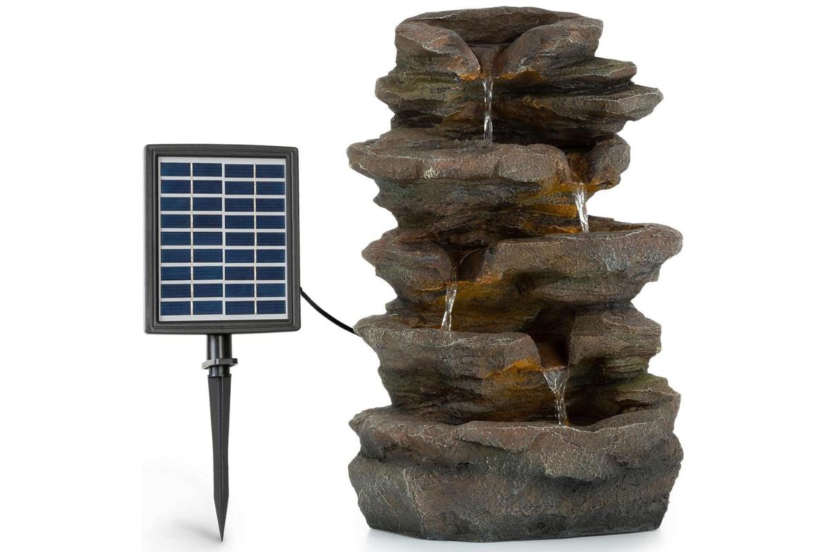 La fuente Stonehenge de Blumfeldt combina estética y sostenibilidad gracias a su diseño de inspiración pétrea y funcionamiento con energía solar. Ideal para jardines, terrazas o interiores, esta fuente crea un efecto visual y sonoro relajante con su circuito cerrado de agua que fluye por varios niveles. Las luces LED integradas en cada cuenca realzan el movimiento del agua, sobre todo al anochecer, creando una atmósfera acogedora sin necesidad de enchufes ni toma de agua externa. Una opción eficiente y decorativa para cualquier espacio.