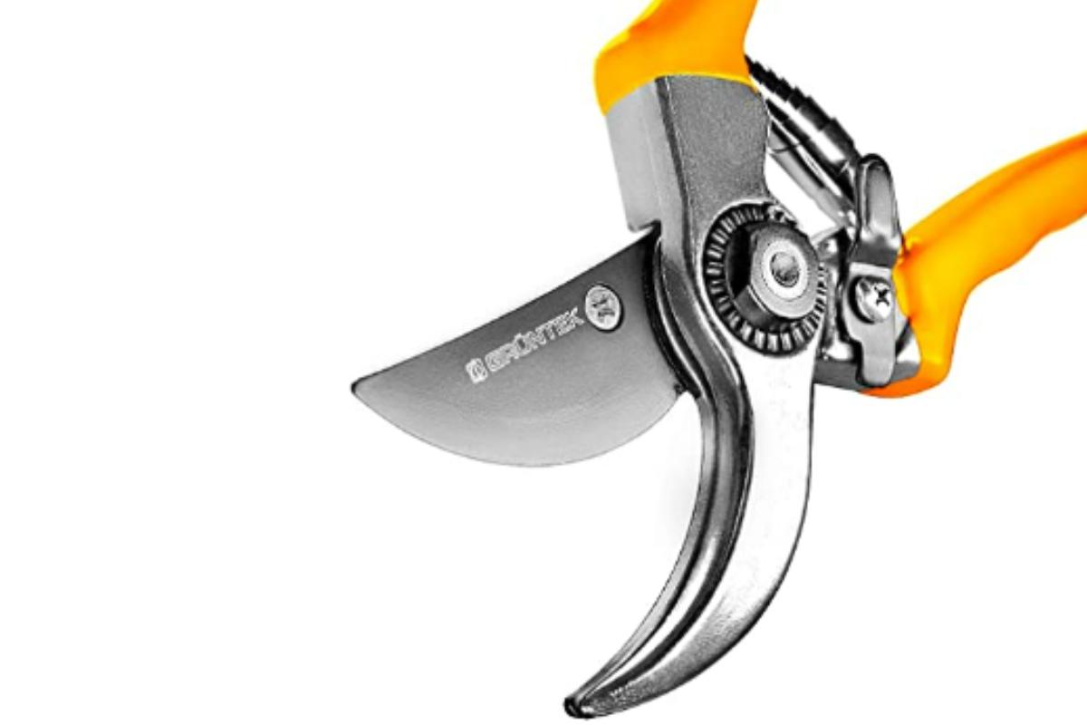 Otras tijeras podadoras de una mano muy buenas son las que ofrece la marca Grüntek. Se trata de unas tijeras con sistema de corte bypass, con una hoja superior de acero muy afilada que ofrece un corte poderoso y preciso. Puede cortar tallos y ramas finas de hasta 20 mm de diámetro. Si te interesa comprar esta herramienta de jardinería precisa y ligera, no dudes en consultar su precio aquí.