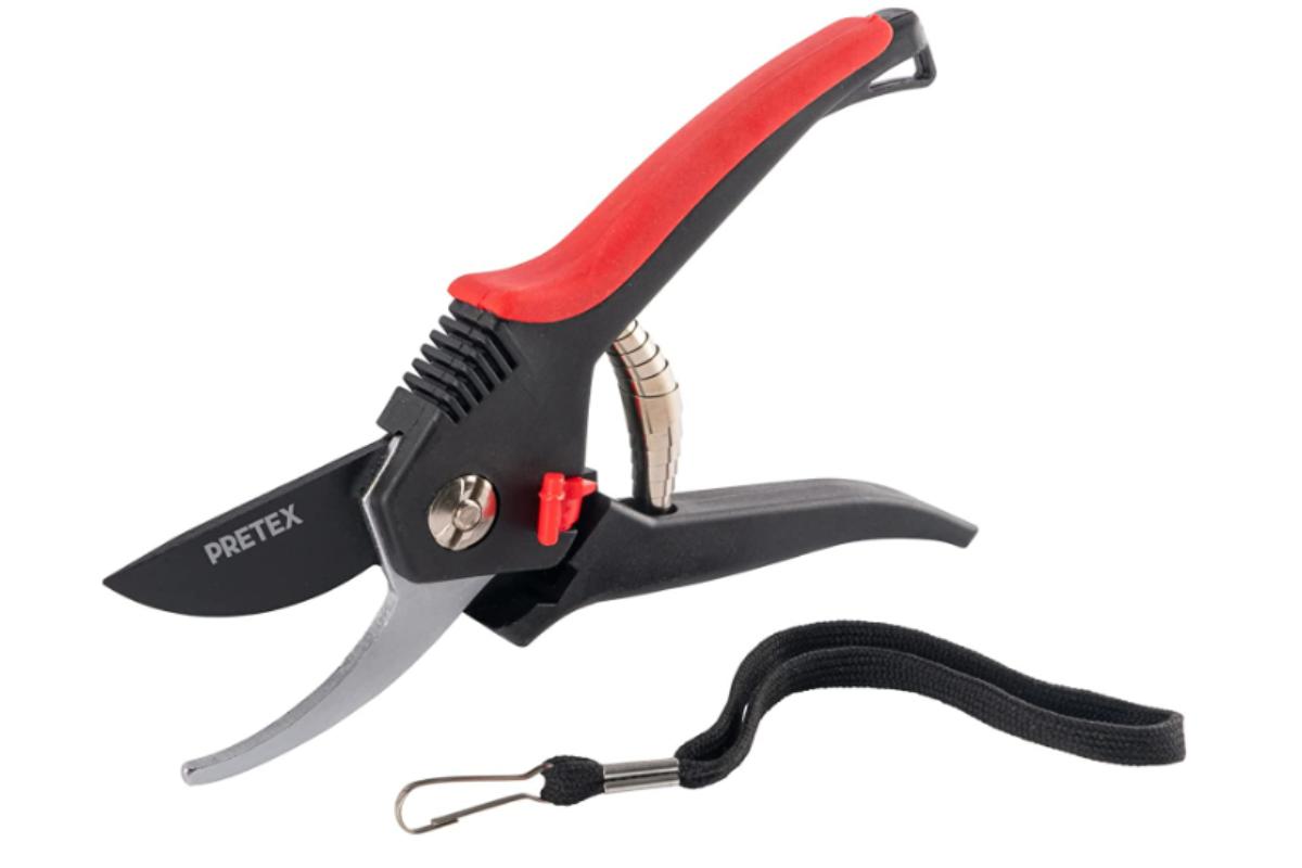 Otras de las mejores tijeras podadoras para usar con una mano son las de la marca Pretex. Tienen una cuchilla de 5 cm de largo, antiadherente y una gran precisión. Su sujeción es muy cómoda y tienen cierre de seguridad, que puedes bloquear con la misma mano con la que la sujetas. Son adecuadas para cortar desde tallos blandos hasta tallos de madera duros y finos. Si te interesa comprarlas, aquí puedes verlas.