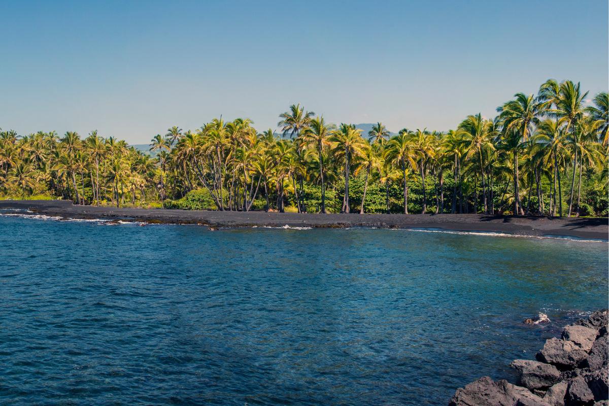 Ubicada en la costa sudeste de Kau en la isla de Hawái en Estados Unidos, Punaluu Black Sand Beach, es una playa increíble de arena negra que se ha formado como resultado de la actividad volcánica. Constituye un área protegida donde tortugas verdes denominadas allí como “honu” (Chelonia mydas) suelen anidar. Rodeada de cocoteros y vegetación tropical, esta playa bañada por el océano Pacífico es un destino ideal para la observación de la vida silvestre.