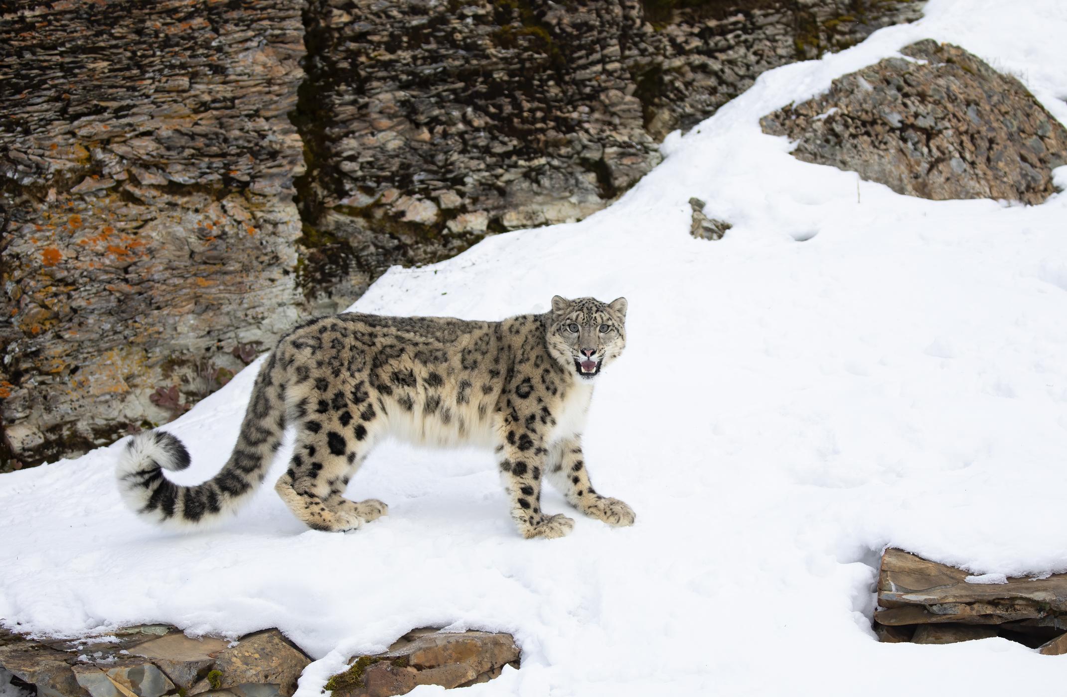 - Un dato curioso es que en la frente tienen patrones únicos de manchas, que no se repiten en otro leopardo de las nieves, y que son útiles para reconocerlos.