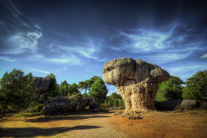 Entre los 10 paisajes más bonitos de España también encontramos la Ciudad encantada de Cuenca. En este único y hermoso paisaje natural, las grandes rocas de caliza han sido modificadas por el viento y el agua hasta el punto de tener formas realmente extrañas, como por ejemplo la que vemos en la imagen, con forma de seta al tener la base mucho más estrecha que la parte superior. Además, esta zona de Cuenca está llena de pinares, logrando una combinación de paisaje única.