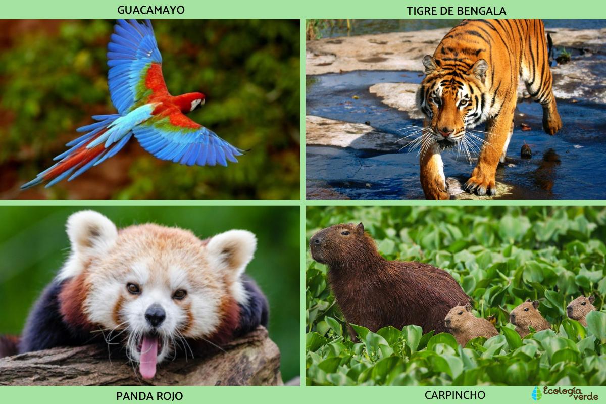 - Guacamayos (Ara): muy bonitos debido a sus plumajes de colores intensos. Aquí puedes leer sobre Por qué la guacamaya está en peligro de extinción.