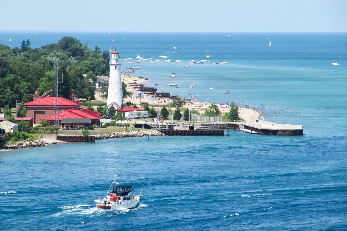 En la zona de los Grandes Lagos también se encuentra el lago Hurón, con una superficie de 59.596 kilómetros cuadrados y una profundidad máxima de 229 metros. El lago Hurón se localiza entre Estados Unidad y Canadá y en su interior se encuentra la isla de Manitoulin, la isla más grande del mundo bañada por un lago de agua dulce.