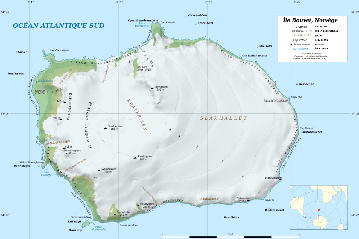 Situada en el Atlántico Sur, la Isla Bouvet es una pequeña isla volcánica que, al igual que el Punto Nemo, se considera uno de los lugares más remotos del planeta. Ubicada a aproximadamente 1.700 kilómetros de la costa antártica y a más de 2.500 kilómetros de Sudáfrica, su punto terrestre más cercano, la isla es una dependencia de Noruega y permanece deshabitada.