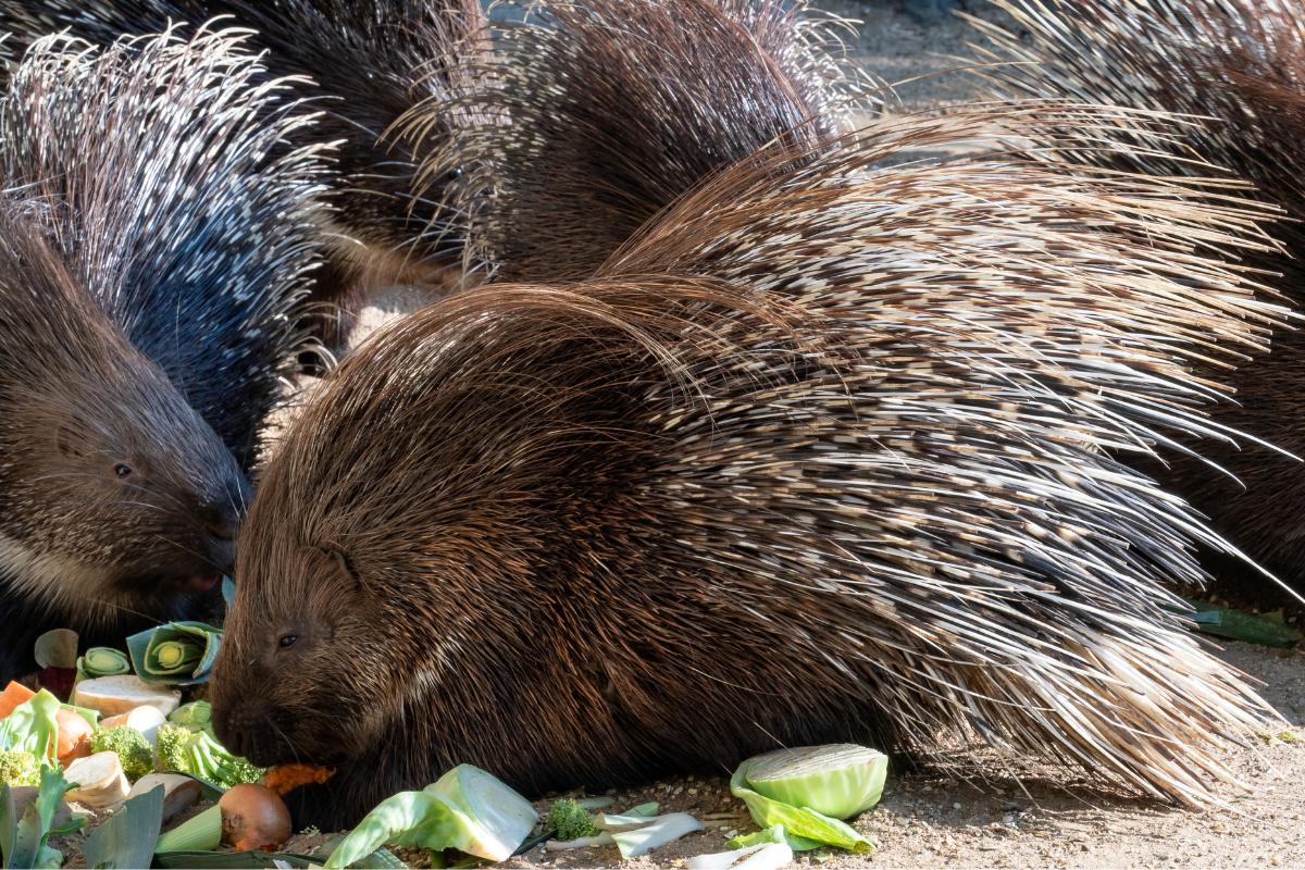 También llamado puercoespín del cabo, este es uno de los roedores más grandes del mundo, alcanzando una longitud de 63 a 81 centímetros, con una cola de 11 a 20 centímetros, y un peso que varía entre 10 y 24 kilogramos. Su característica más llamativa es su denso pelaje de espinas largas y afiladas, que puede erizar y hacer sonar como mecanismo de defensa. Cuando se siente amenazado, es capaz de cargar hacia su atacante, clavando sus púas en la piel del depredador.