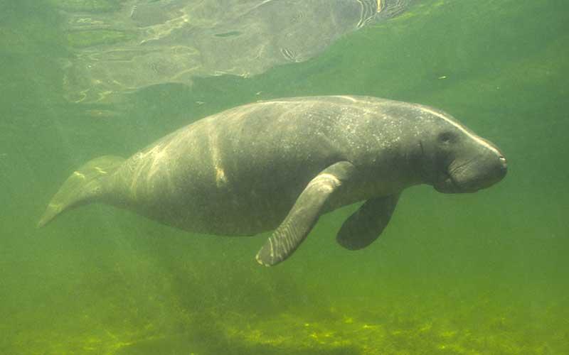 El color de los manatíes es gris con manchas blancas o rosadas en el pecho y abdomen. Los movimientos de estos mamíferos marinos son muy lentos y poseen una capa de algas sobre su piel, lo que hace que luzcan verdosos.